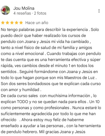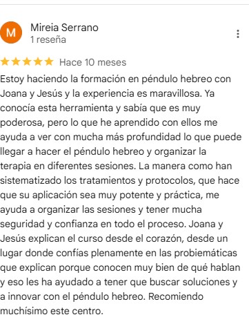 Pues todas ellas y muchas más de nuestras alumnas, además de todo lo que hacen en sus trabajos , también hacen sesiones de Péndulo Hebreo para ellas, para su familia o para obtener unos ingresos extras