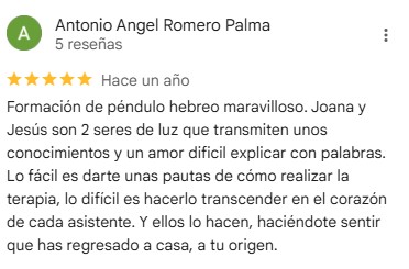 Es un curso ideal para entrar en contacto con el Péndulo Hebreo y conocer los secretos de su manejo a nivel de Maestro. También para conocernos a nosotros y comprobar si sintonizas con nuestra forma de enseñar, así si decides seguir lo harás con total convencimiento y sin necesidad de hacer una gran inversión de entrada.